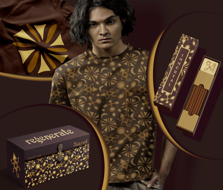 Sacred = Visual Identity - Seamless Pattern + Package Design + Elements + Typography