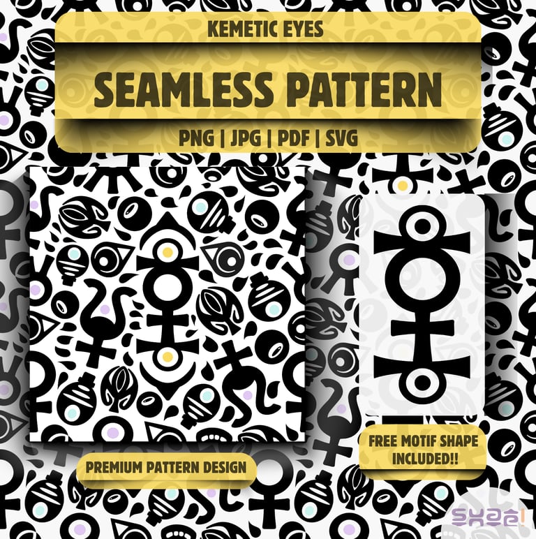 Kemetic symbolism meets modern design in a premium seamless pattern built for infinite creative use.