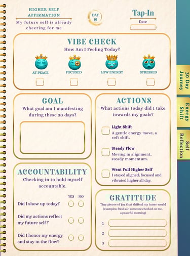 An interactive, fillable journal designed to help you tap in daily and rise into your higher self.