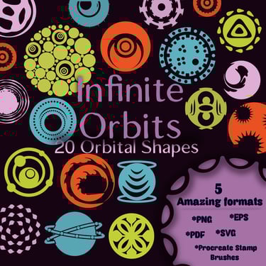 20 cosmic orbital shapes • PNG, SVG, EPS, PDF Bonus:Procreate Stamp Brushes